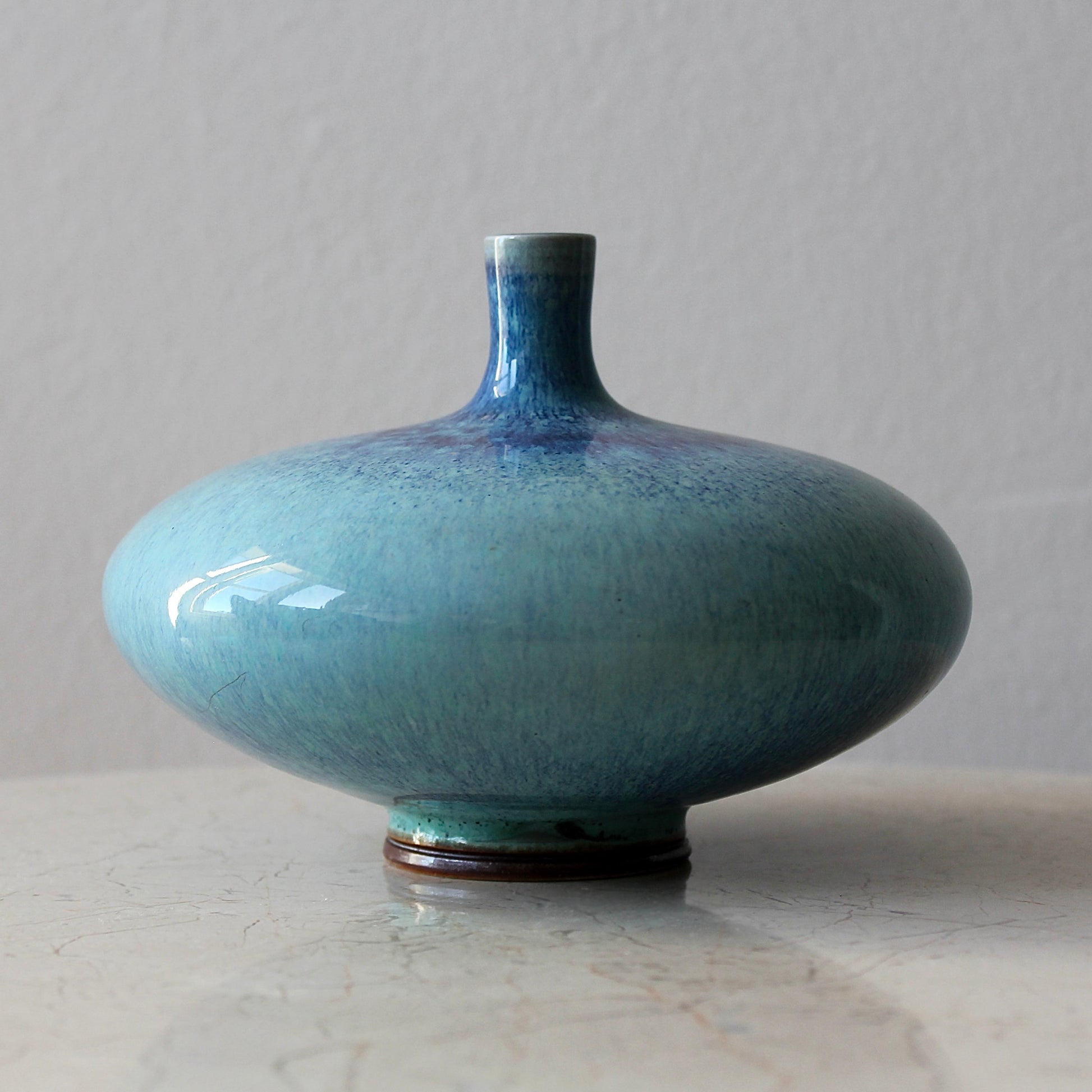 This beautiful hand-thrown unique vase was created by the master of Modern ceramics Bernt Friberg (1899-1981). Friberg was a Swedish ceramic artist praised for his outstanding technical perfection, simplicity of form, glossy glazes and attention to fine detail.
