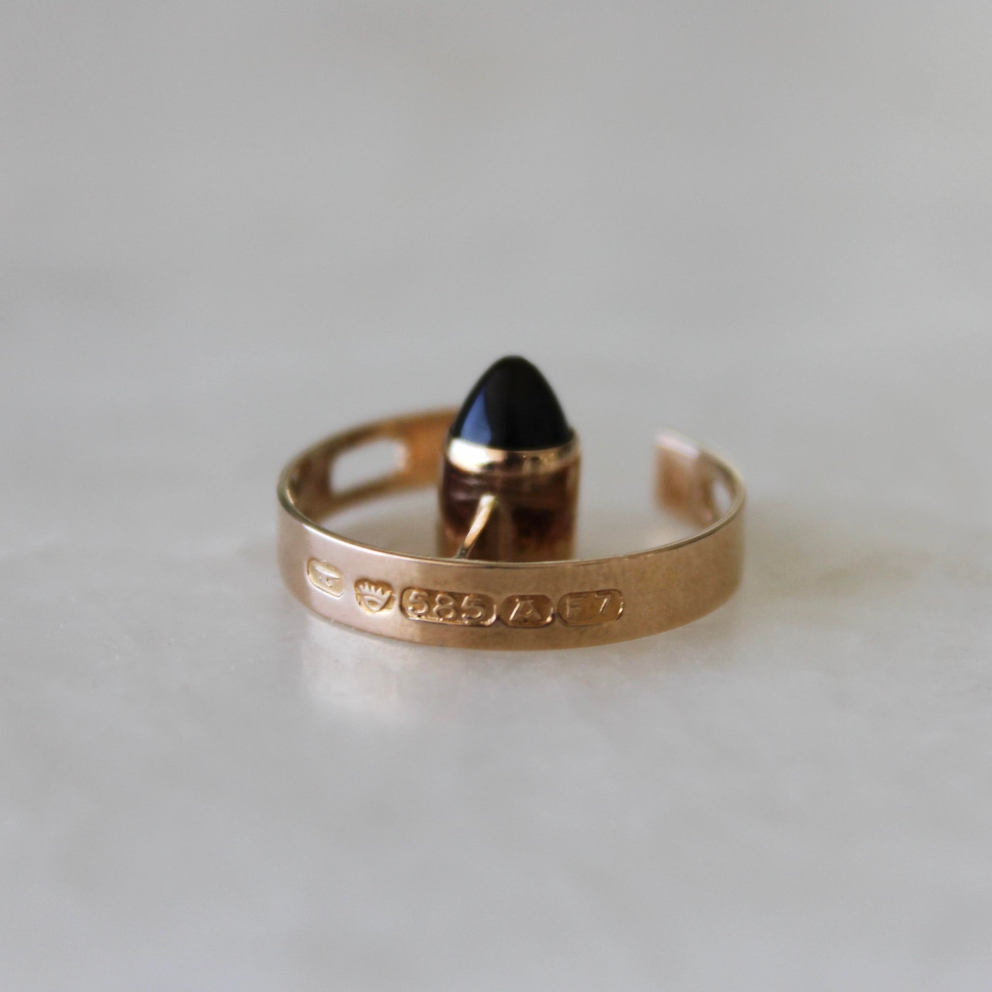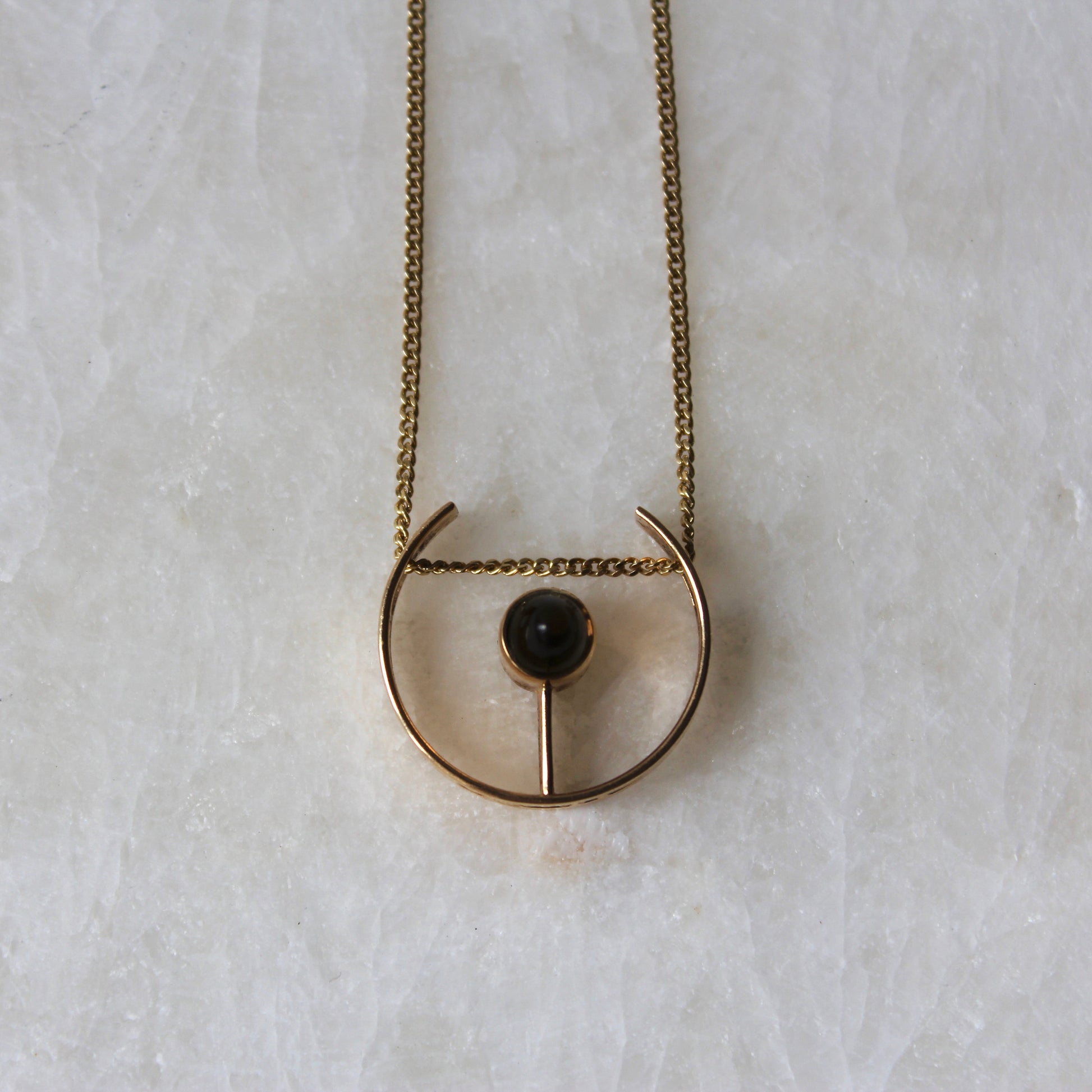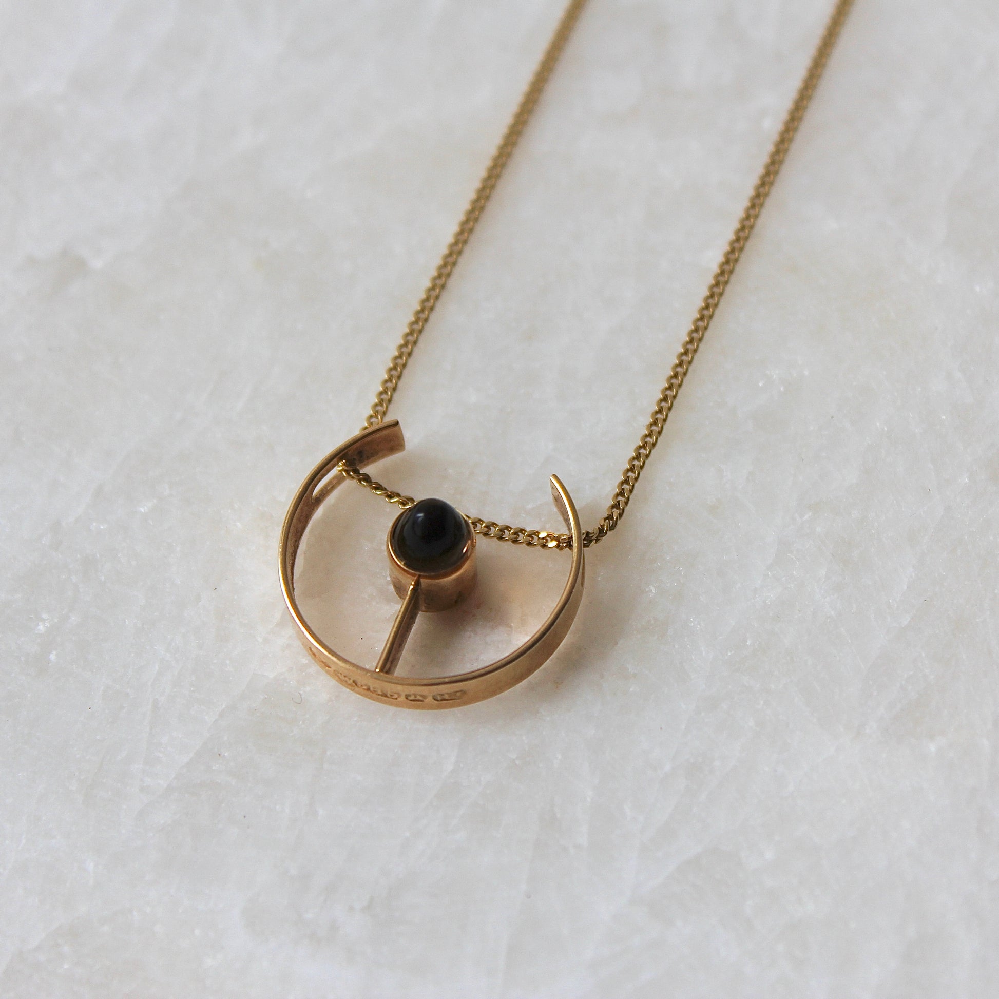 This beautiful original Modernist pendant features solid 14k gold with a polished smoky quartz bullet. It was designed by the famous Elis Kauppi and handcrafted by his workshop Kupittaan Kulta. The minimal design makes this piece very versatile and your favourite chain can easily be threaded through.
