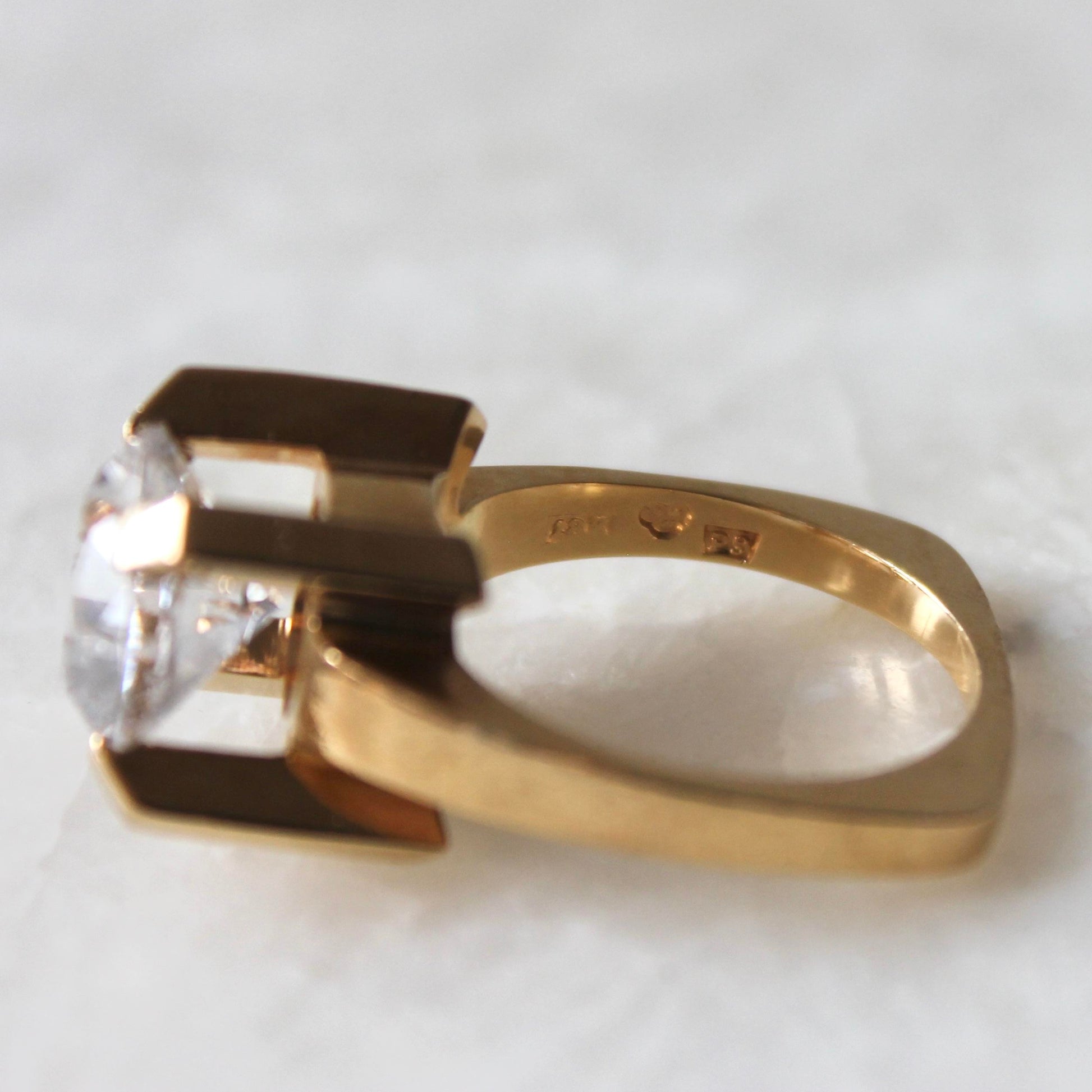 The inner band is fully stamped with the Swedish hallmarks: 'GVH' (designer/maker), Stockholm motif, the three crowns motif (Sweden), '18k' (material) & 'P9' (year).