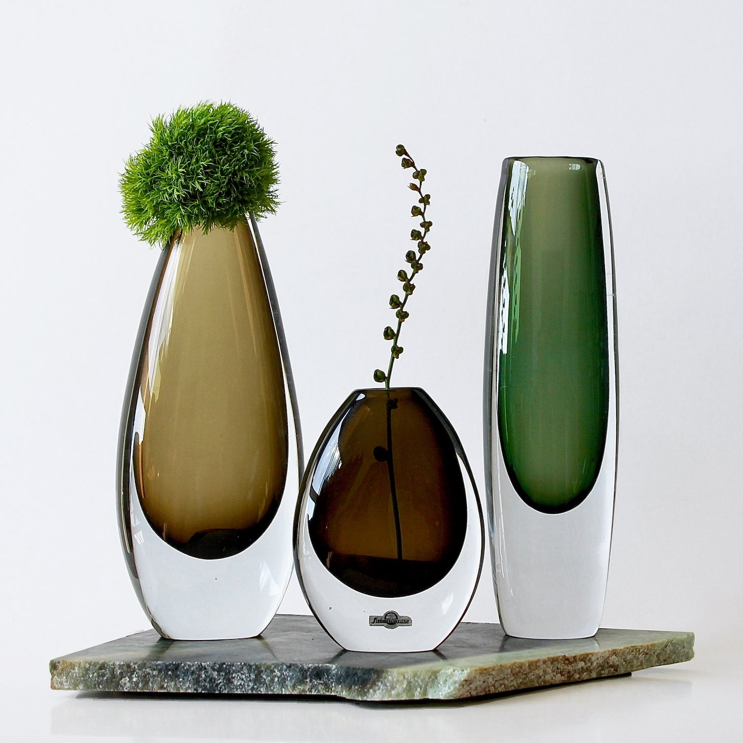 Sommerso vase featuring handblown solid clear Stromberg crystal with a beautiful forrest green underlay. This vase is in very good vintage condition with no notches, discolouration, cracks or repairs. It is signed on the underside 'Strömberg (maker) B936 (model)'