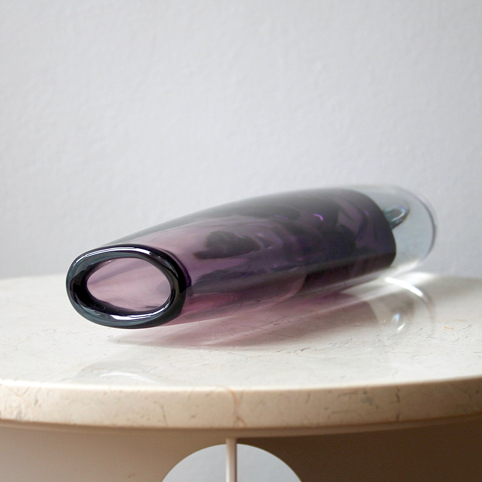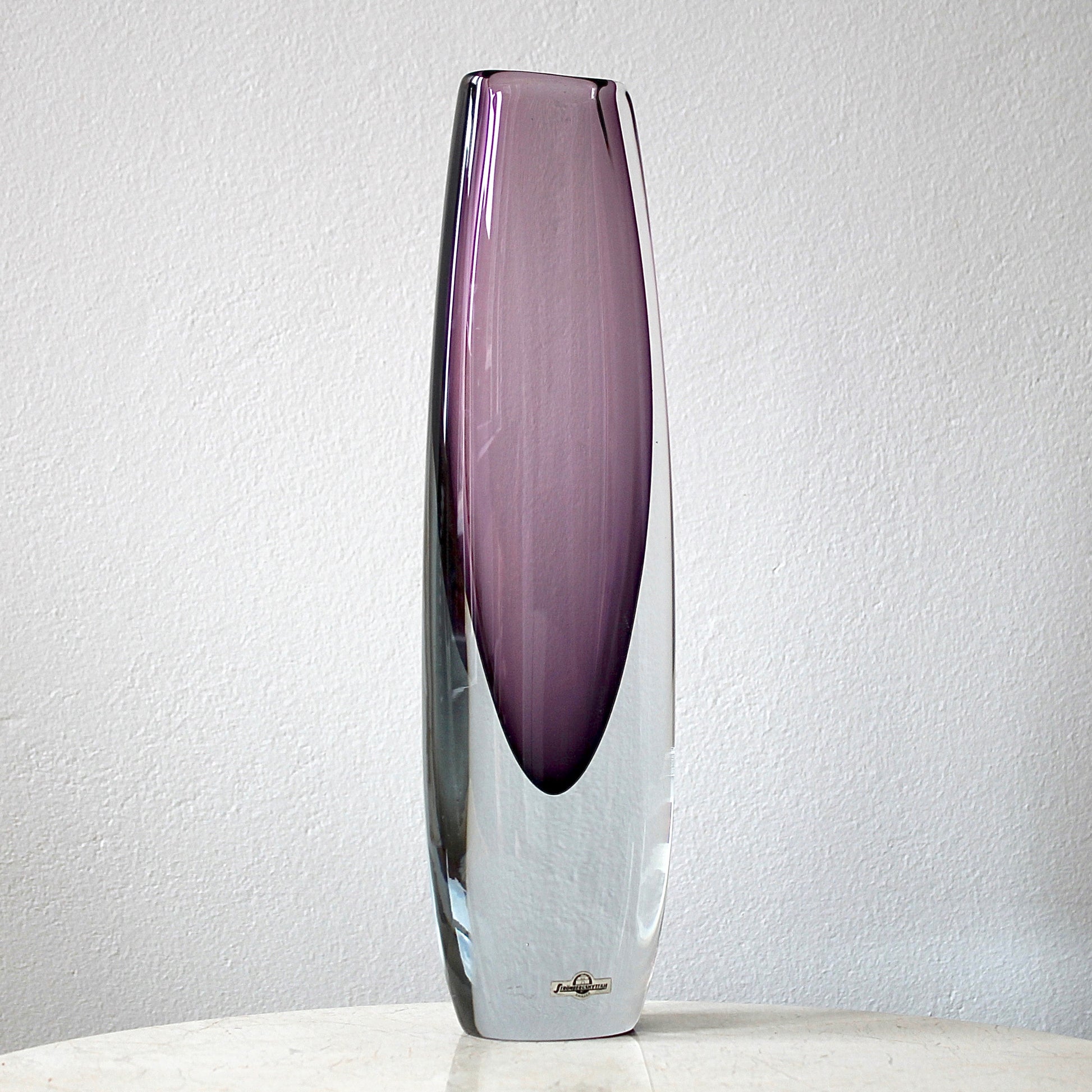 This very large sommerso vase features hand-blown solid clear Stromberg crystal with a beautiful translucent amethyst underlay.
