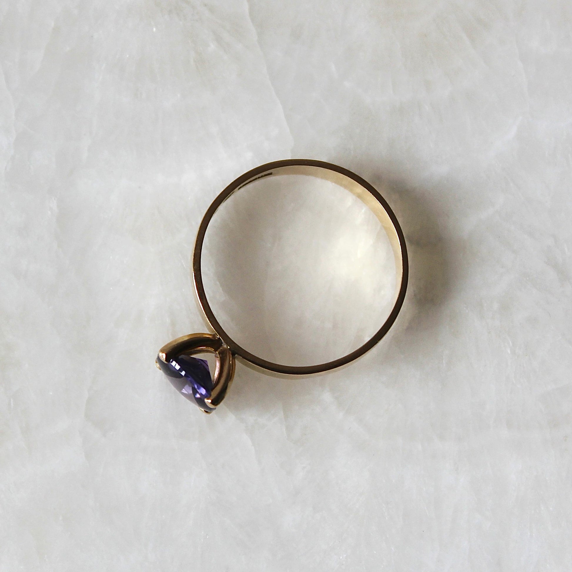 It is in excellent condition (outstanding for age) with a perfect amethyst (8mm diameter) that sits firmly in the setting. The band retains its original shape well.