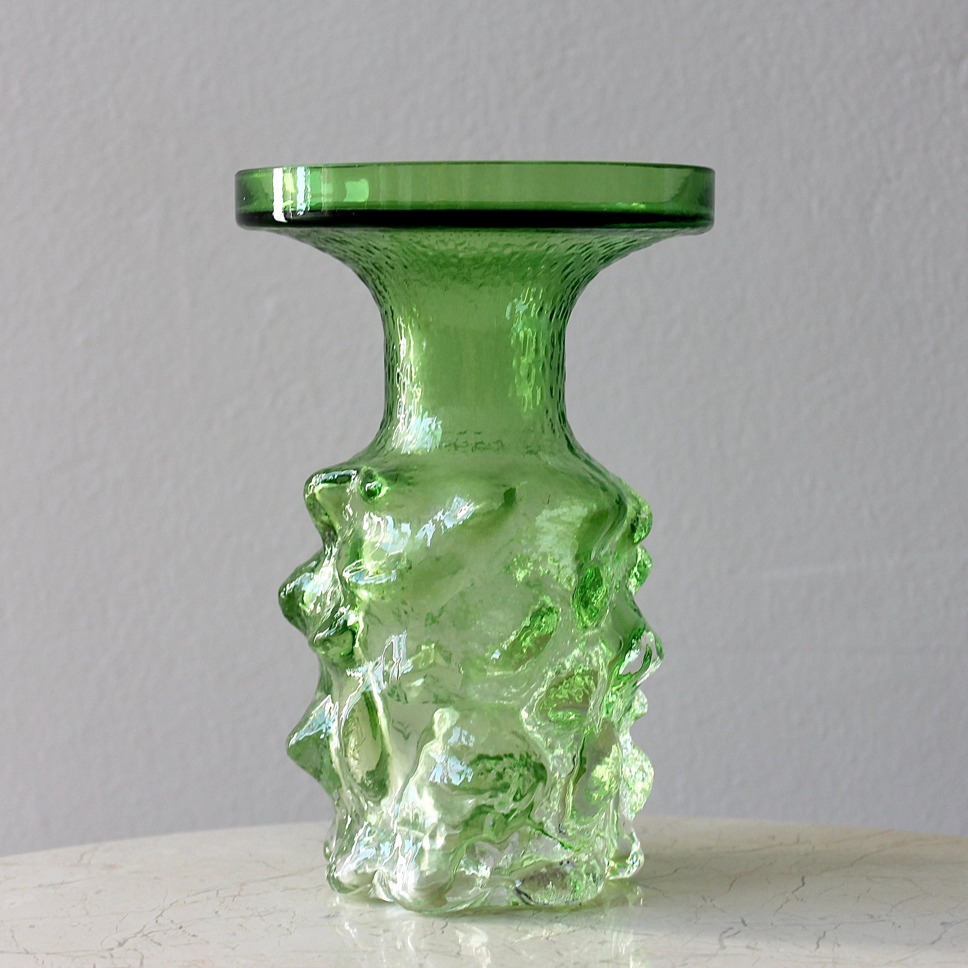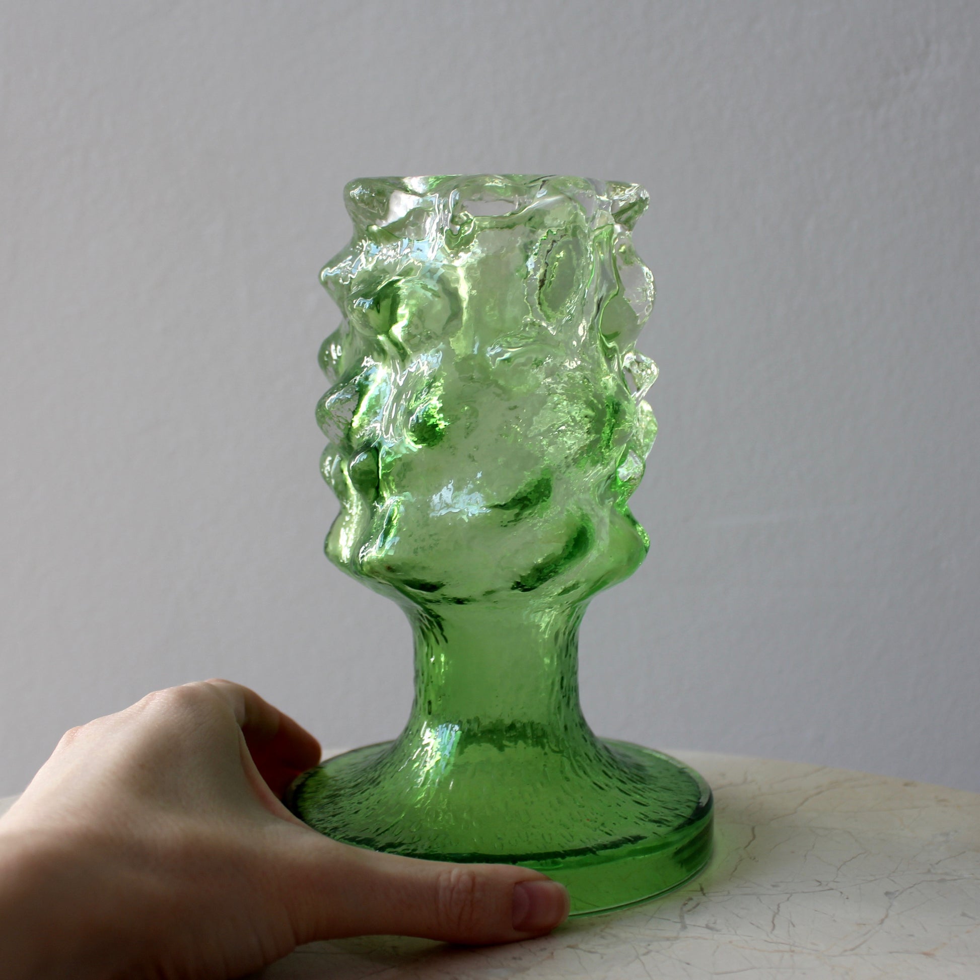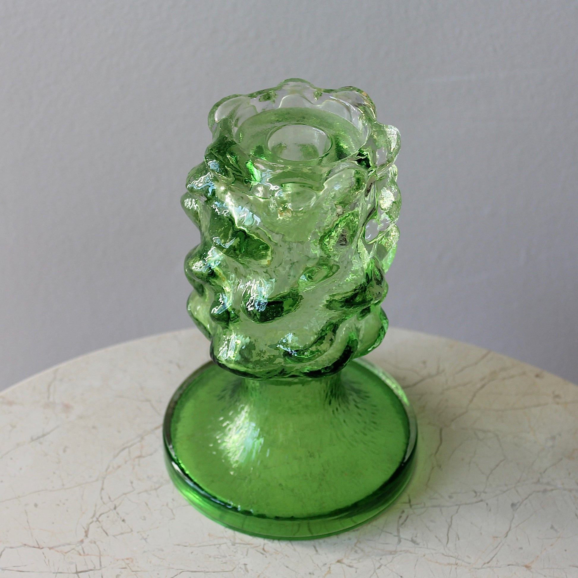 This fun piece from the 70s features solid mould-blown crystal in ombre lime-green tones. The interesting design doubles as both a candle holder and vase with separate cavities, and can be placed either way up to serve a different function!