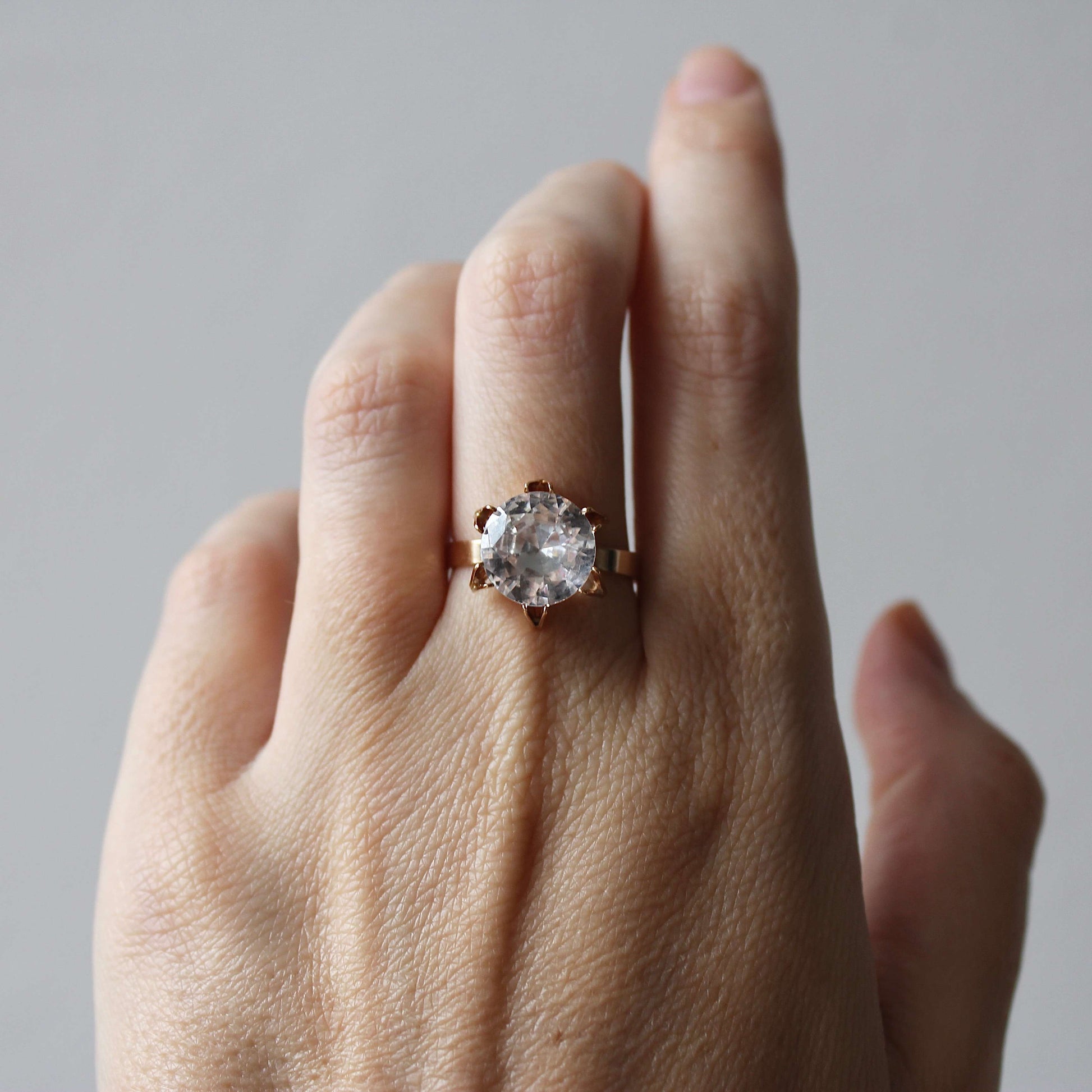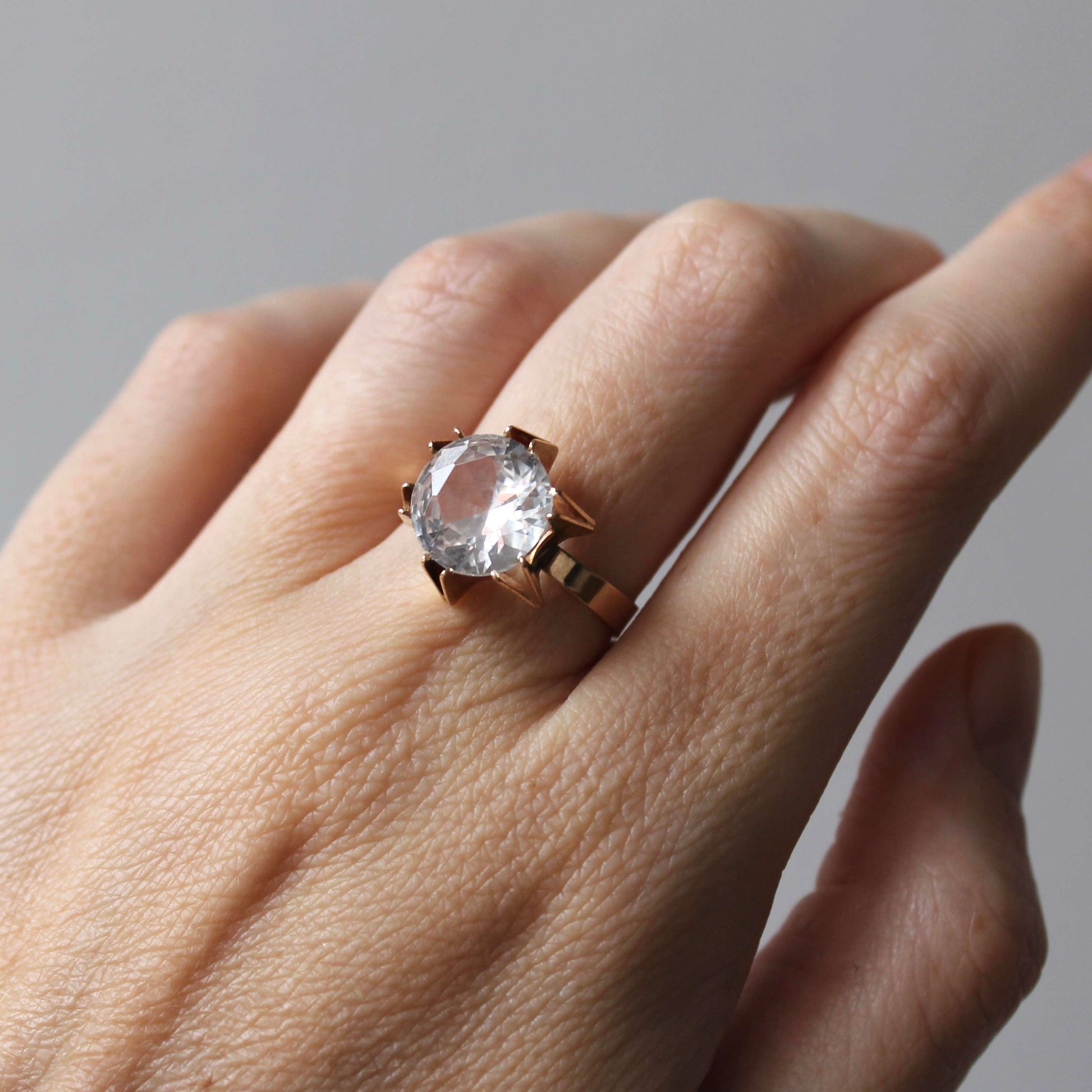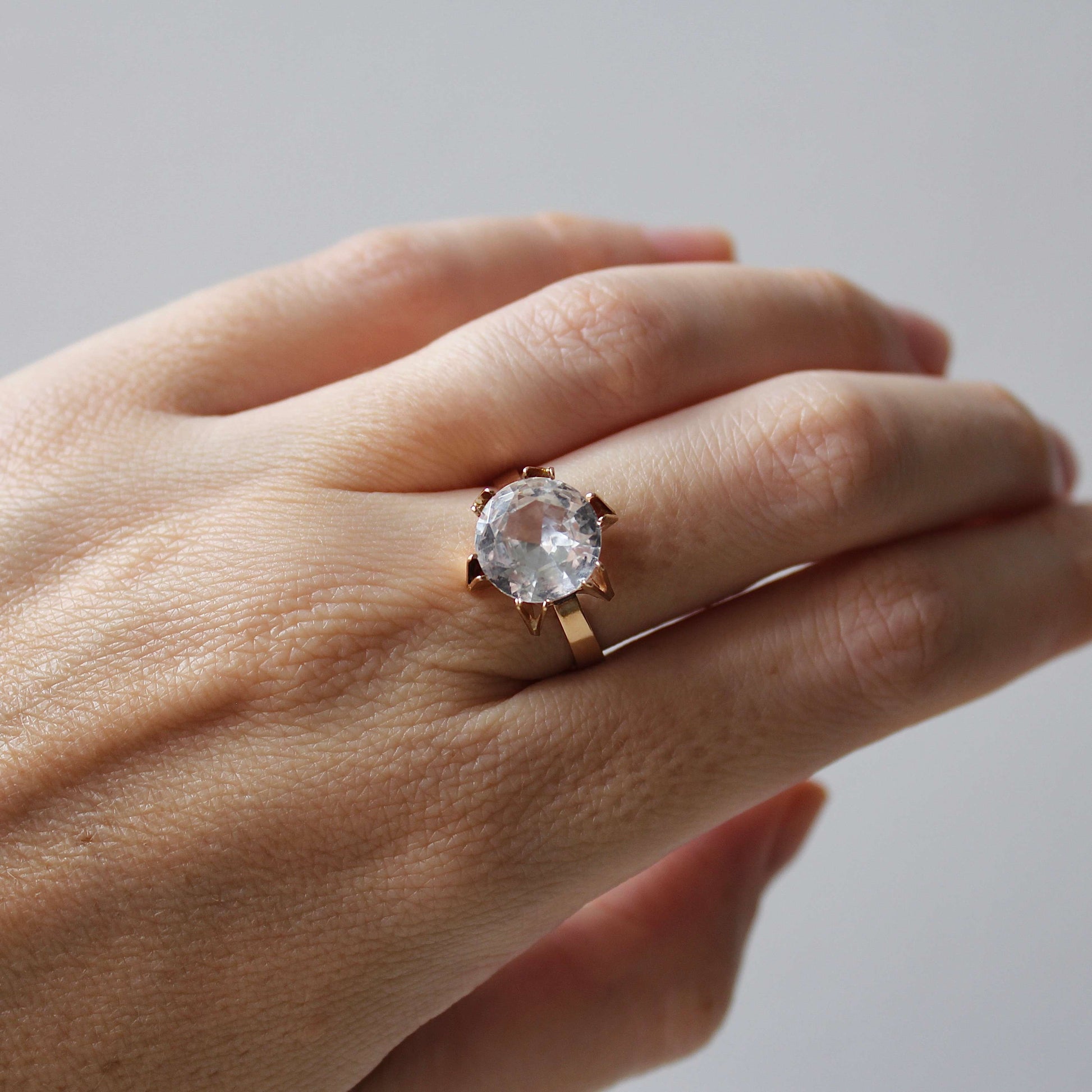 It is in excellent vintage condition (outstanding for age). The stone (10mm diameter) sits firmly in the setting and the band retains its original shape well.