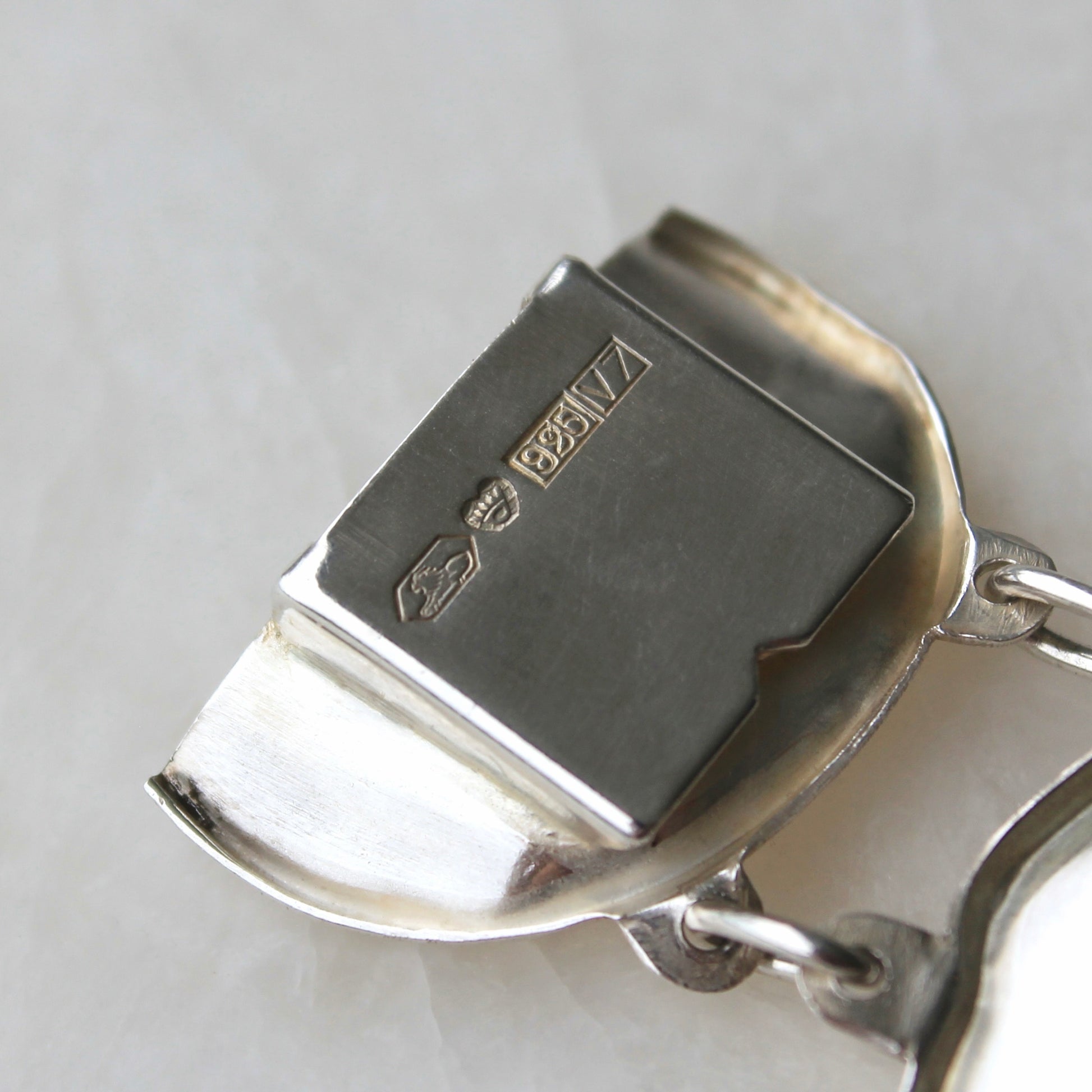 The bracelet is fully stamped with the Finnish hallmarks: Kultakeskus motif (maker), crown motif (Finland), '925' (silver purity) & 'V7' (year).