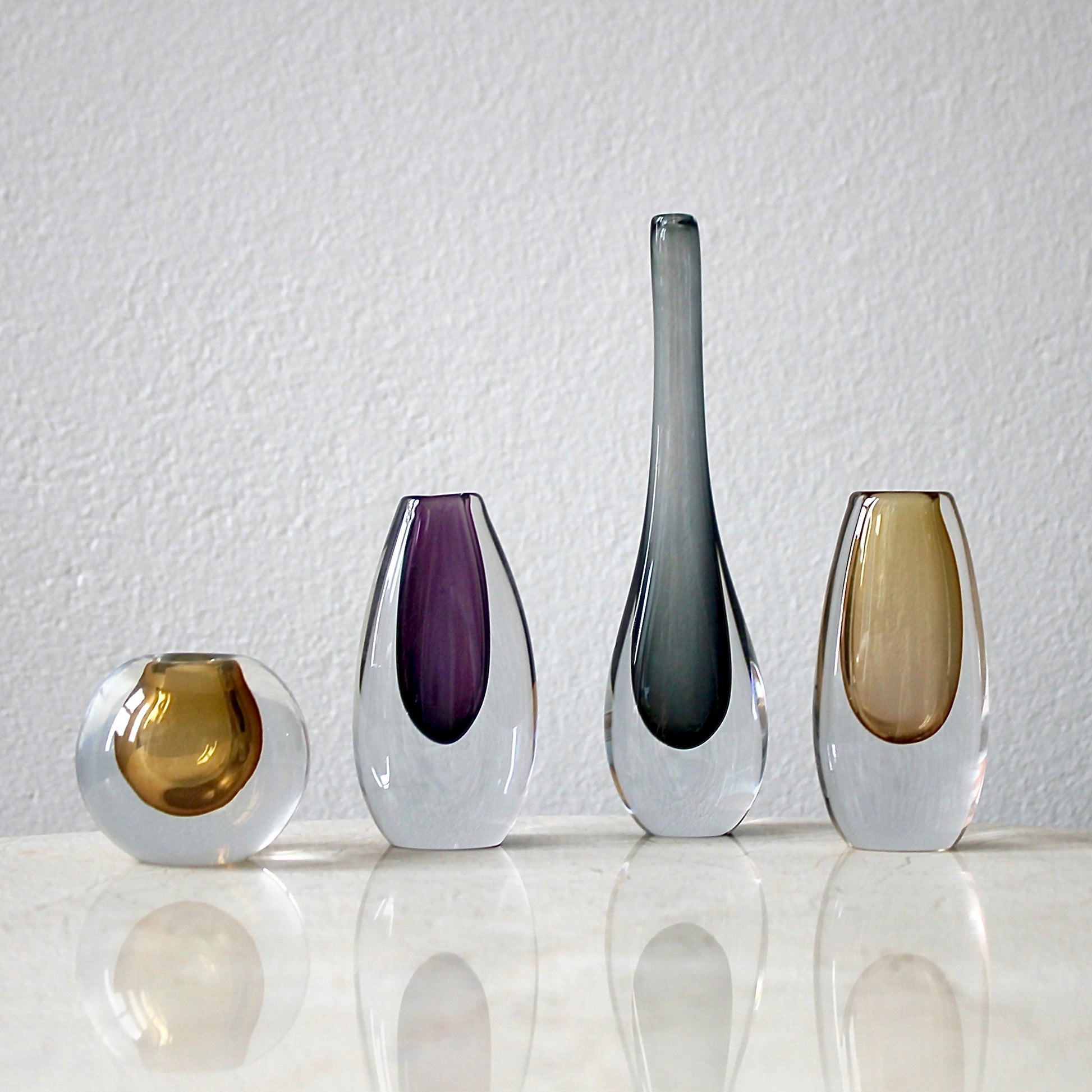 Each vase is in excellent condition with no notches, discolouration, cracks or repairs. Three vases are signed on the underside 'Strömberg' with their corresponding model number. The models include B937, B894 & B930.