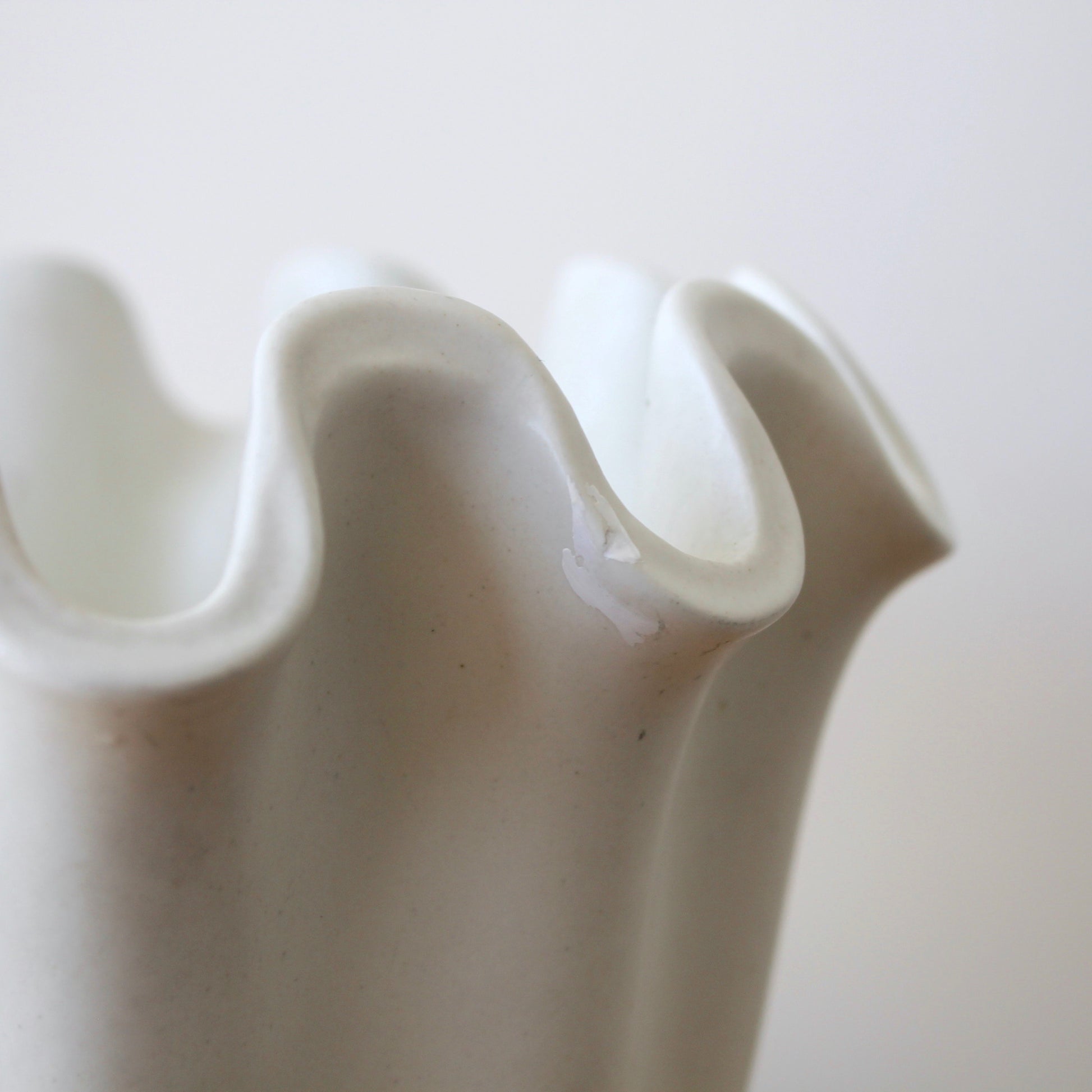 The underside is stamped 'Gustavsberg, Carrara'. This vase is in good vintage condition with some visible signs of surface wear commensurate with age and use. It has a small repair on the upper rim, which I have included a photo of.